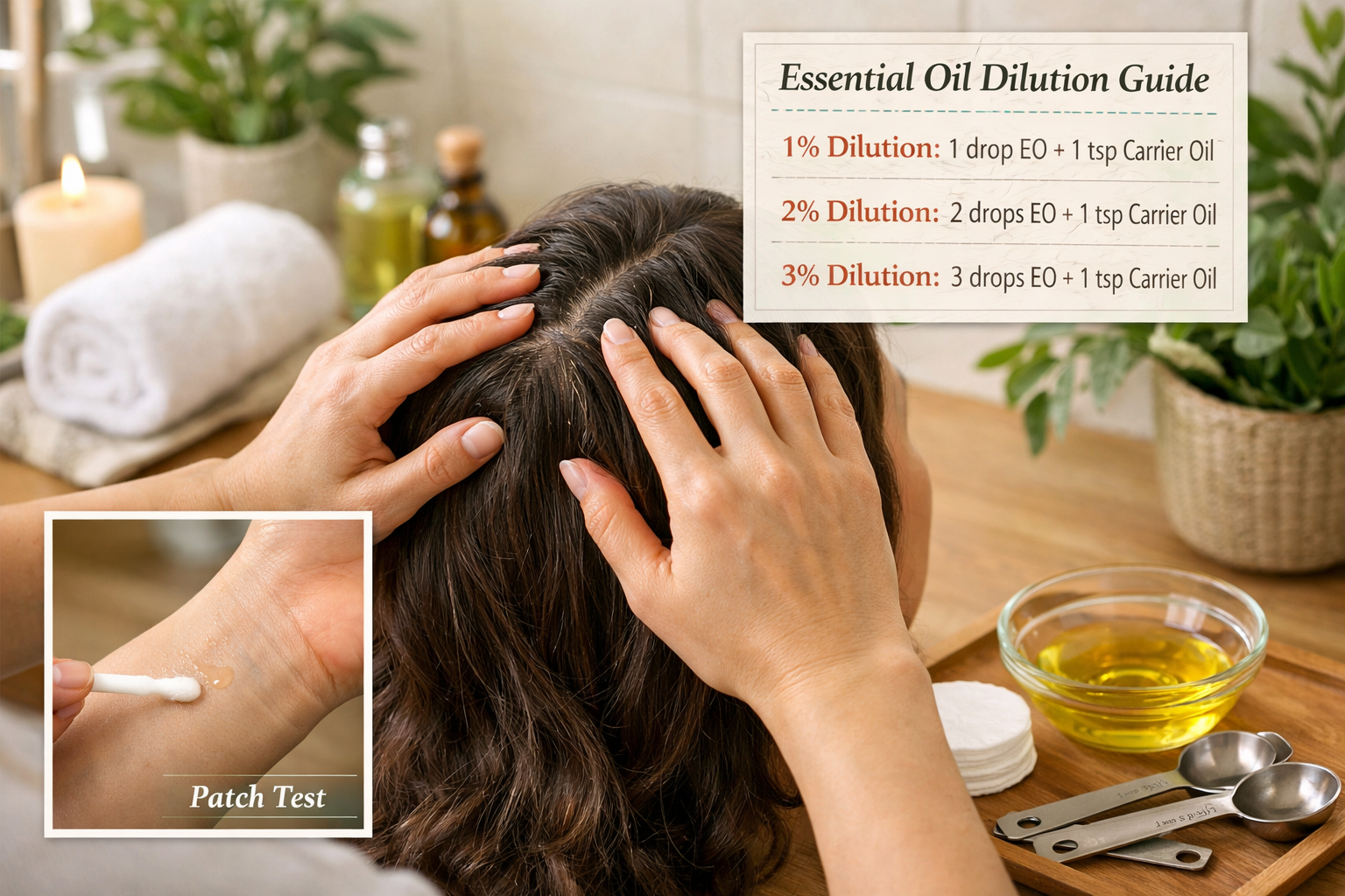 Never apply essential oils directly to the scalp. Always dilute with carrier oils to prevent irritation and ensure safe absorption.