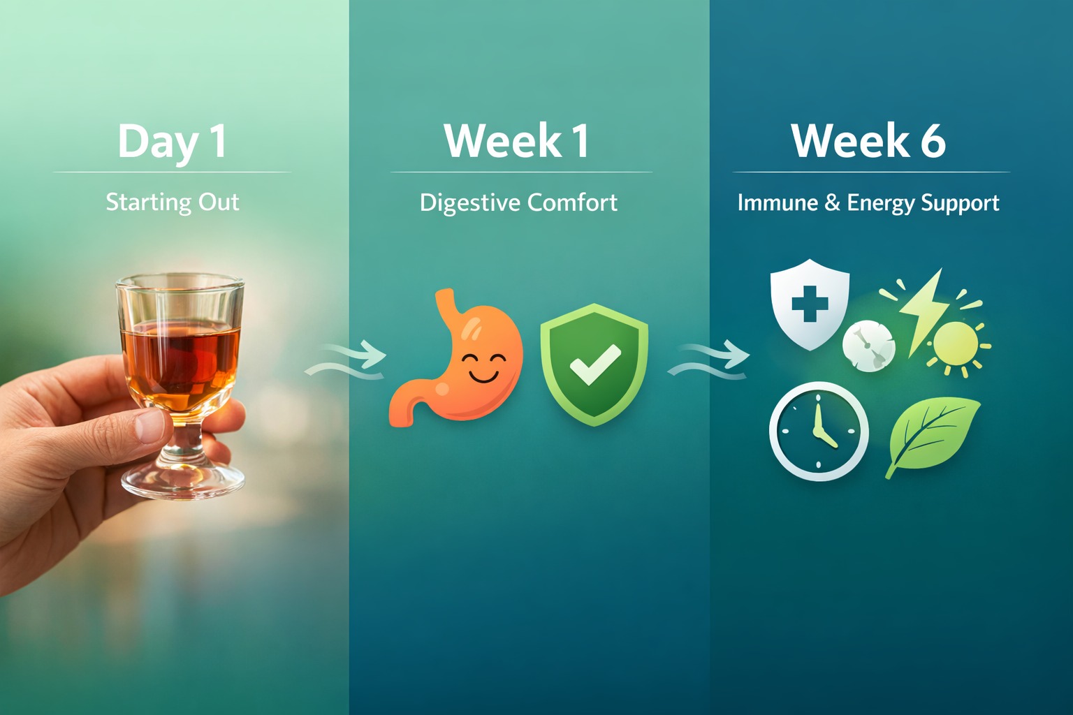Practical tip: Keep a simple daily log of how you feel during the first 8 weeks. Tracking digestion, energy, and sleep makes it much easier to assess whether soursop bitters are working for your body.