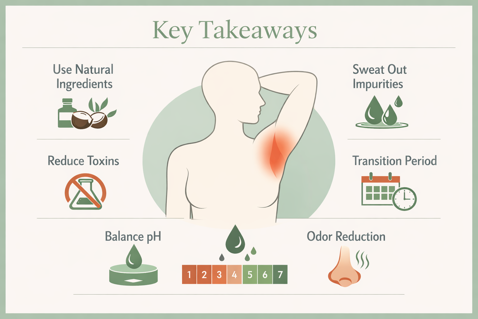 - Benefits include reduced odor, less irritation, and smoother underarm skin during the transition to natural deodorants