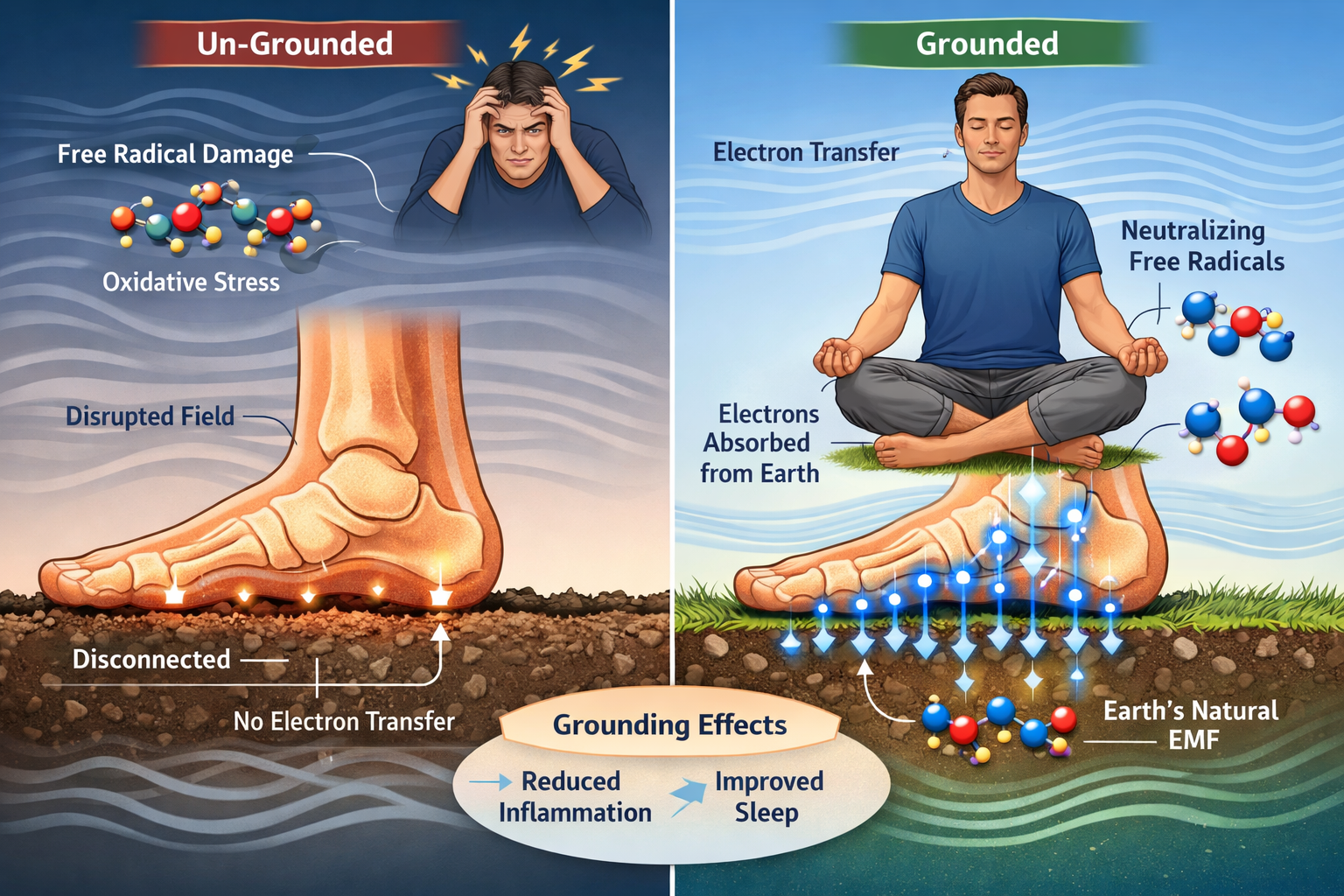 The Earth’s surface contains an abundant supply of free electrons, maintained by lightning strikes, solar radiation, and the planet’s natural electromagnetic field. When you make direct contact with the ground, these electrons flow into your body, potentially neutralizing free radicals and reducing what scientists call “oxidative stress” [3].
